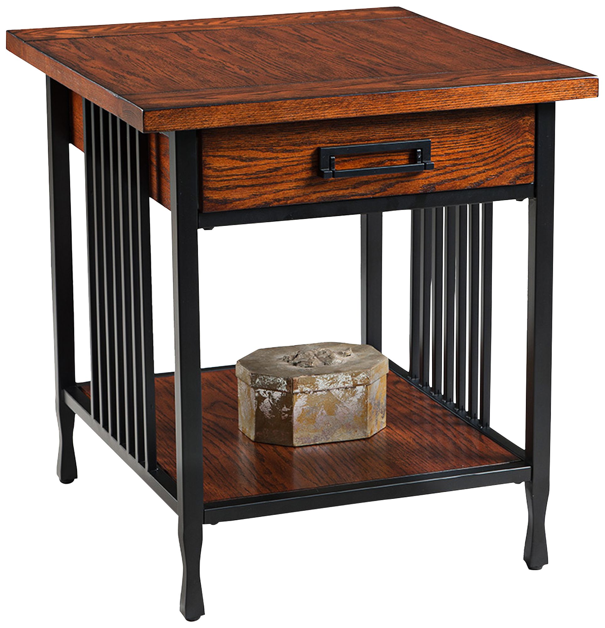 Browse a large selection of end table and side table designs in a variety of styles,. A pretty traditional wooden end table featuring a round top in warm brown. It features small drawer with metal handle. Rustic 18 wide metal legs and oak top round side table. Shop end tables, lamp tables, side tables and more at american signature furniture.